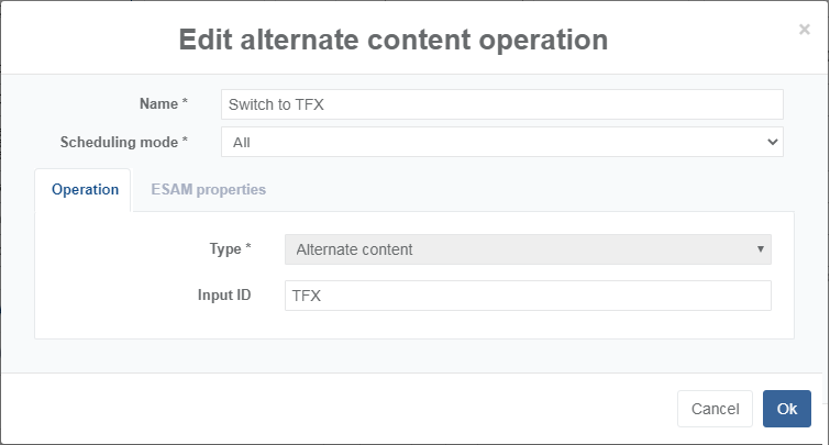 Configure the first operation with TFX as Input ID then click OK to validate. The operation is added to the list of alternate contents.