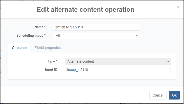 Repeat step #4 with lineup_st2110 as Input ID then click OK to validate. The operation is added to the list of alternate contents. You should get the following: