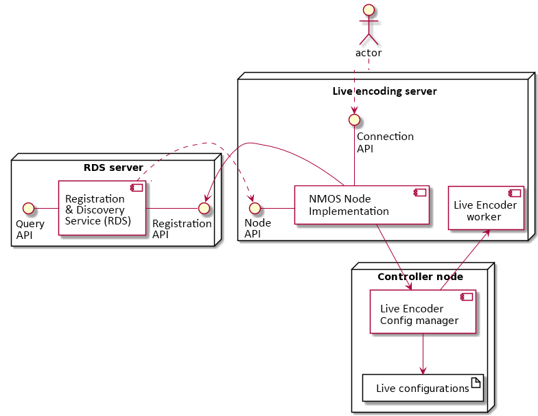 - The Live Encoding component implements API endpoints so that the NMOS node microservice can retrieve the NMOS resources of a Live Encoding service.