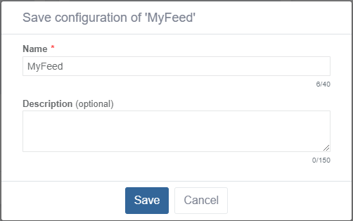 You can save an existing feed configuration. The saved configurations can then be reused thus facilitating a new feed configuration process.