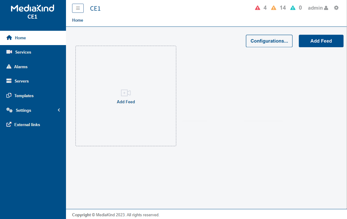 Enter a name for that feed then click the Add feed button. A new feed is displayed on the Home page. This feed has some basic predefined settings for Encode and Stream process components, but you will need to complete and configure some parameters.