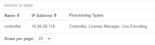 For most menu pages available in the Controller UI, you can display more or less rows in the table by selecting the number of rows to display.