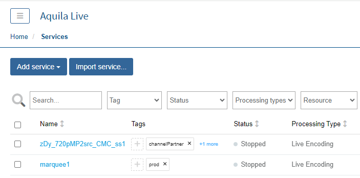A service is a set of parameters required for a given processing type. Services can be manually started and stopped.