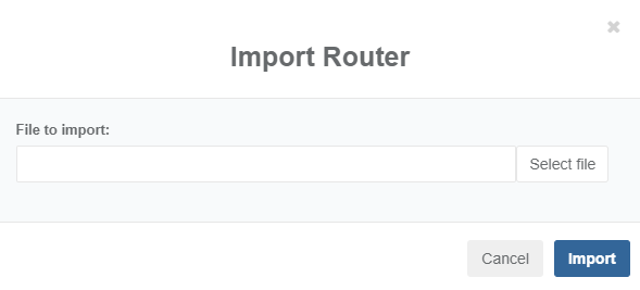 Click Import router. The Import Router display appears, enabling you to import a router configuration file (yaml) from another system.