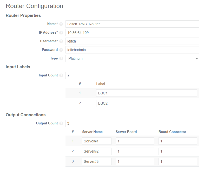 - Click Add router. The Router Configuration parameters display.