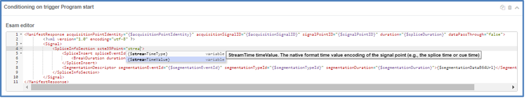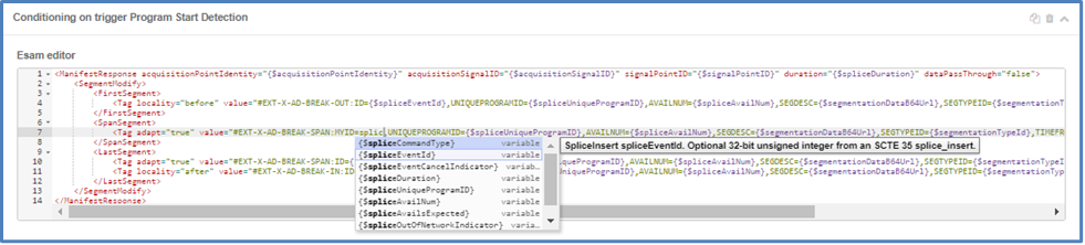 For a full control over the ESAM preview, you need to tick the Enable expert mode when adding conditioning for HLS. In this case, pre-defined tags are not defined, instead, you can modify everything within the ESAM preview window.