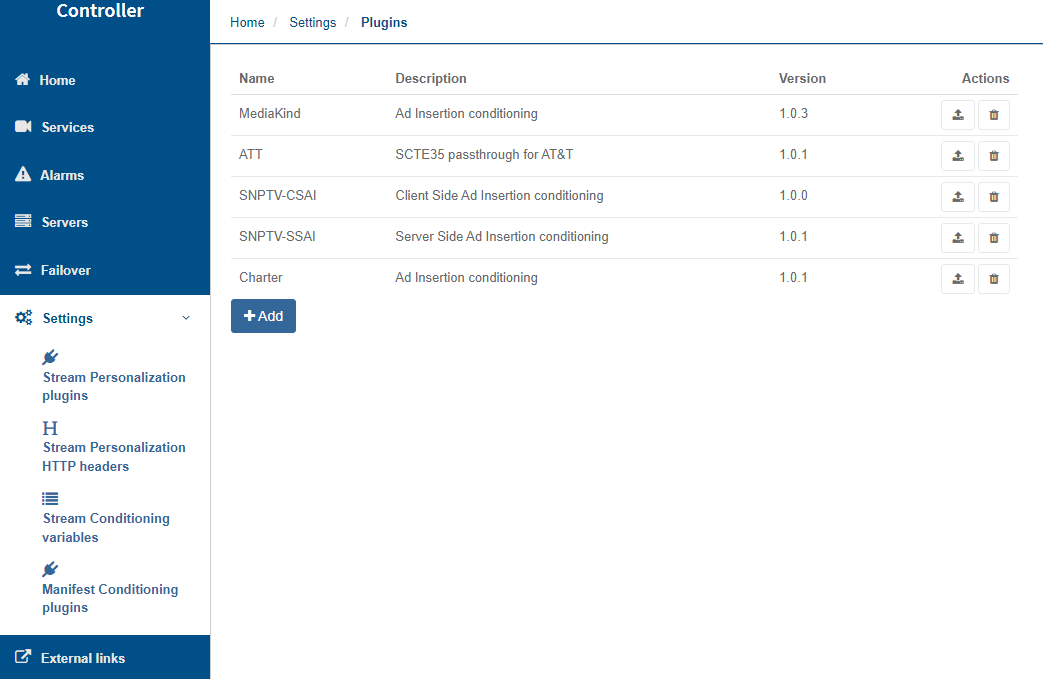 - Click the Add button at the bottom left of the plugin page.