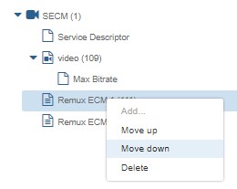 You can change the order of the Remux ECMs within the service or component by selecting that item and selecting a direction.