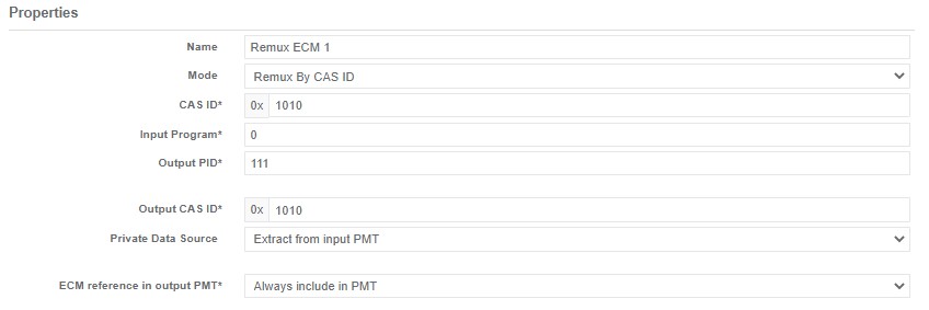 Remux By CAS ID: Enter the incoming CAS ID of the ECM to remux.