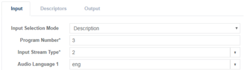 - To regenerate a descriptor: You can regenerate descriptors from an incoming TS by enabling the Regenerate Descriptor option with the incoming TS and Program number.