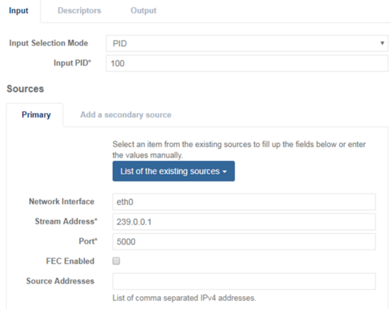 Create a basic output TS from fixed source input SPTS or MPTS. This section will describe how to select incoming PIDs and remap them into a new output Transport stream.