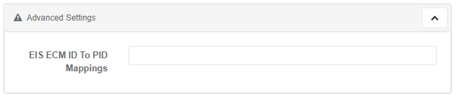 | EIS ECM ID To PID Mappings | Comma-separated list of ECM IDs to PIDs. The ID is the field position unless specified. Example: 200,201,3:400,5-10:500 would map ID->PID: 0->200, 1->201, 3->400, [5,10]->500 | String of max 32 characters |