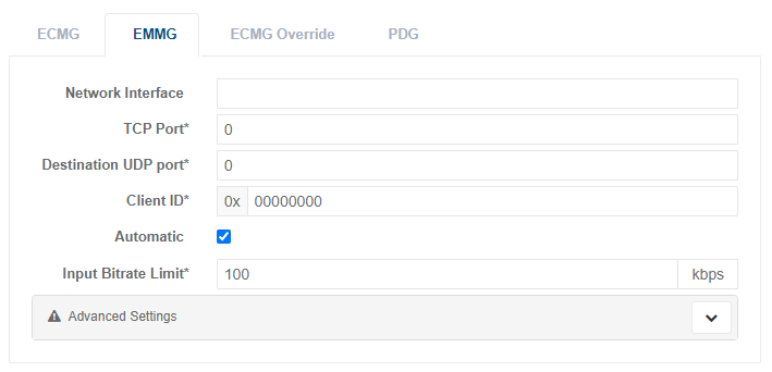 | Destination UDP port* | Destination UDP port for EMMG traffic | 0 to 65535 |