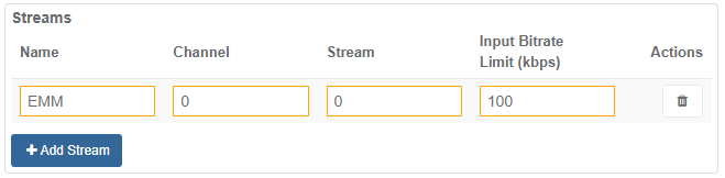 | Input Bitrate Limit | Limit to the incoming bitrate | From 1 to 4294967295 |
