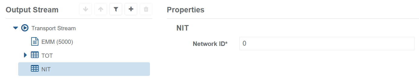 | Original Network ID* | Sets the Original Network ID in the output SDT and NIT (if enabled) | 0 to 65535 |