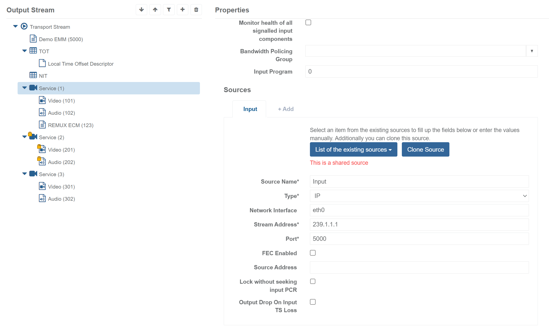 | Output Drop On Input TS Loss | If this input transport stream is lost, all the Transport Stream outputs will be stopped. | Tick box, disabled by default |