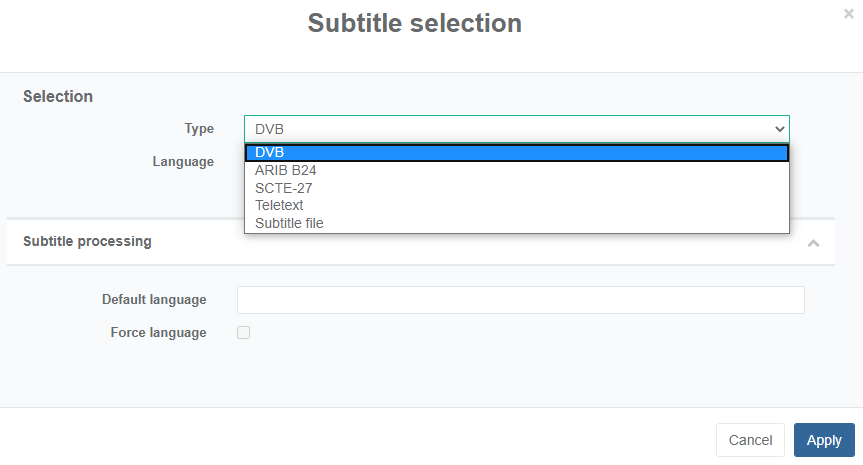 Select the stream to burn-in, then click Apply.