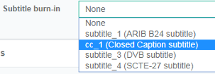 For Closed captions burn-in, configure the Closed Caption tracks in the stream.