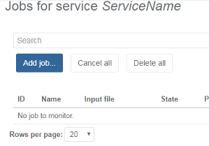 Click to delete a single job, or Delete all to delete all jobs for the service.