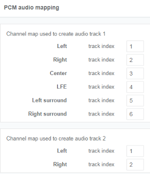 Multi-channel PCM audio is sometimes not declared in input files and presented as independant mono-channel PCM tracks. PCM mapping allows to configure a mapping to re-create a stereo or 5.1 PCM stream from multiple mono-channel PCM tracks.