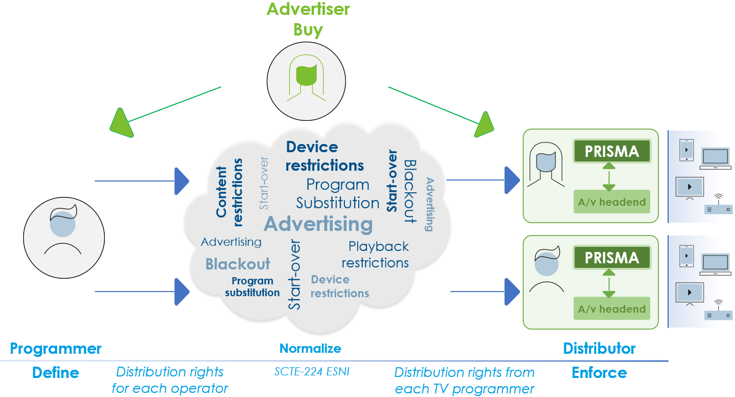 When it comes to managing contractual and legal obligations such as blackout/alternate content and legally mandated program substitution, delivering content has become increasingly complex for operators especially given the increasing rise of IP consumption. Coupling such restrictions with linear advertising or server-side ad insertion (SSAI) adds even more complexity. Prisma has been designed to provide MVPD/operators with a modular, and convergent solution, enabling such viewing restrictions enforcement, as well as ad insertion in support of spot-based and impressions-based advertising business models.