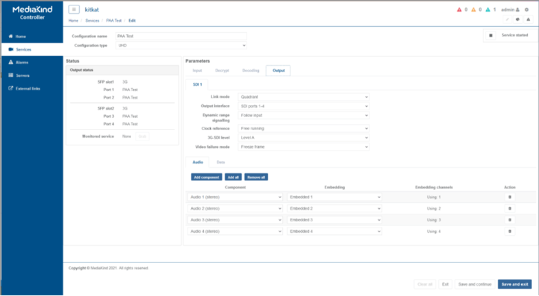 - Any audio component that is removed from the incoming service will be deleted from the SDI output.