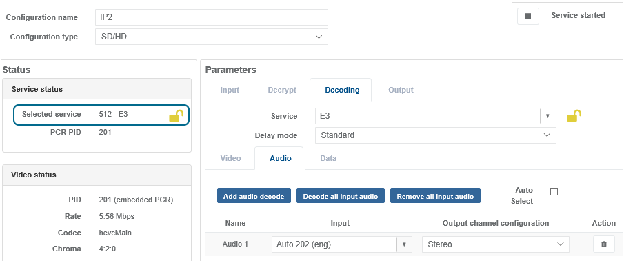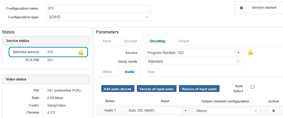 If the incoming service is successfully decrypted then an unlocked padlock will be displayed next to the service.