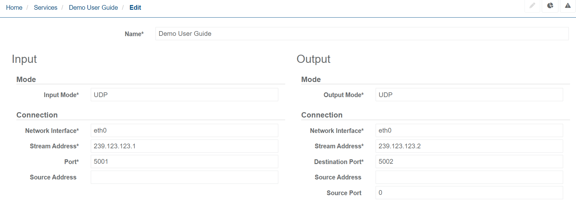 | Stream Address* | Multicast address of the UDP stream | IPv4 address. Does not allow leading zeros. |