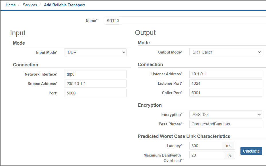 To create a Reliable Transport service and configure it for SRT/Zixi/RIST as required, follow these steps:
