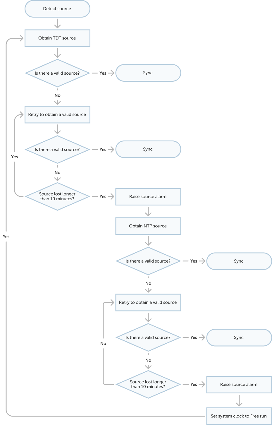 If no valid NTP messages are received or if the messages stop after a period of time, the unit will free run from its current time. If the unit was previously adjusting, this adjustment will be stopped until valid NTP messages are resumed.